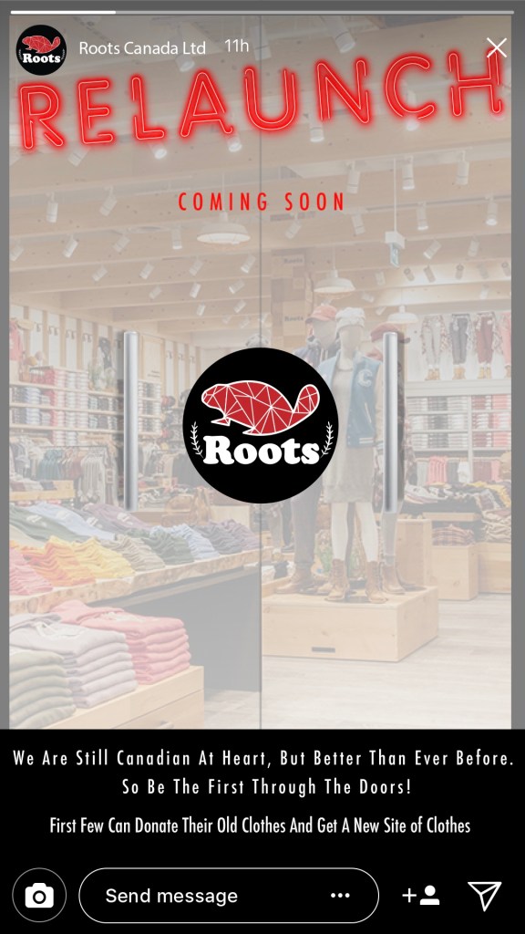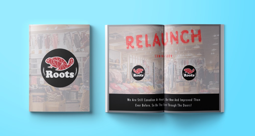 We want to make Roots have a more modern and current look while gaining the sales up. Promoting the new revision Roots relaunch with ads. To tell people that it still has the Roots value and brand identity by saying it’s Canadian at heart but visually new and approve. Come check it out. Rebranding their logo and giving them more modern and current look, create a relaunch of their new reversioned brand including 2 print add, an out of home design and social media ads.