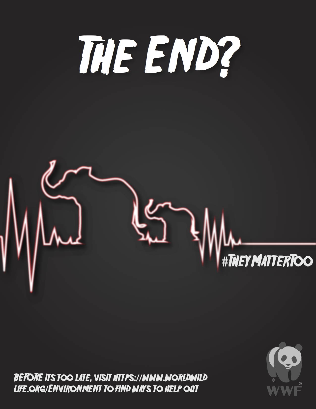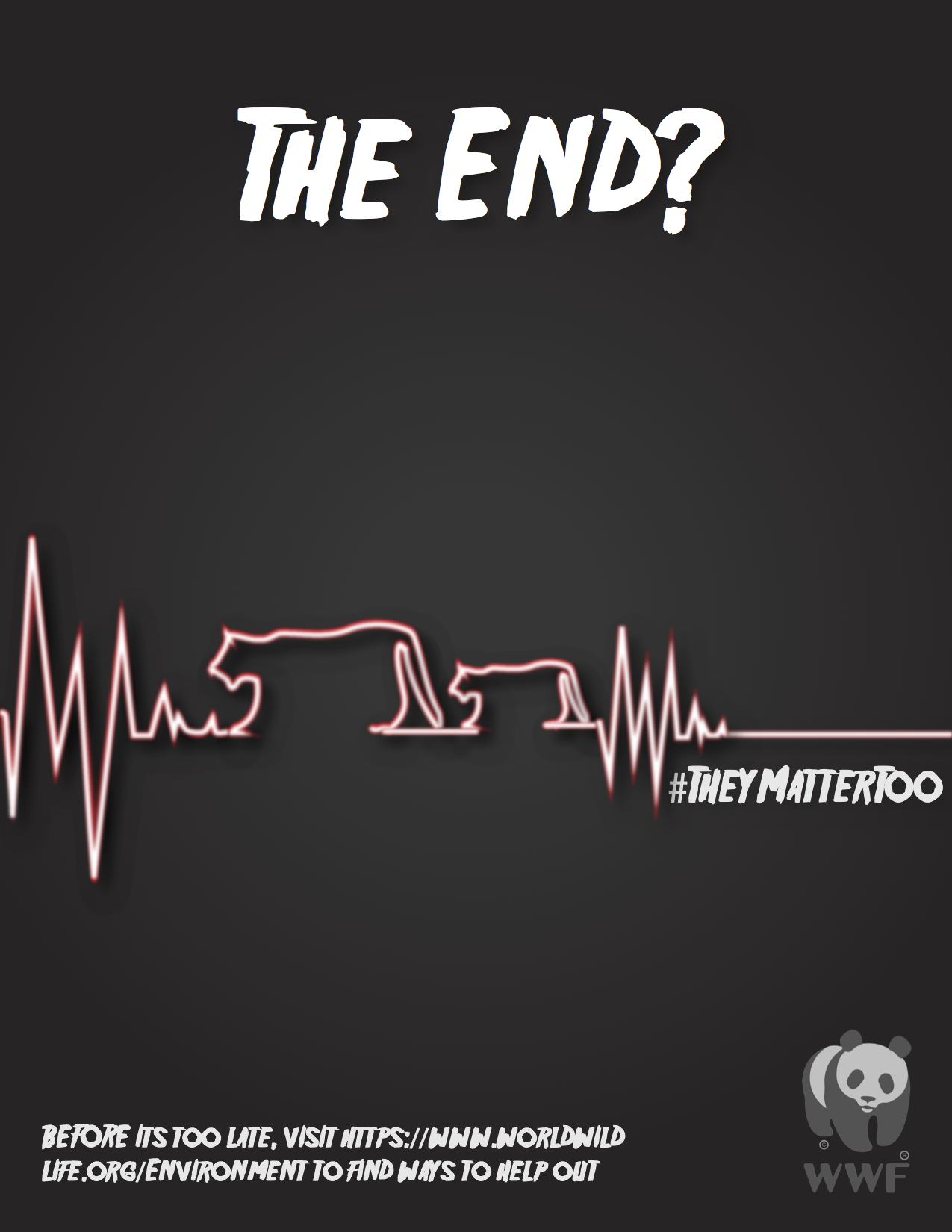 Is “The End” something we want to witness for the animals that we still have? This is a WWF PSA Campaign to bring awareness of how they matter like us and that we should be doing something. Animals are like us who are living creatures. They have a beating heart like us, we should care about them as much as we care about ourselves.